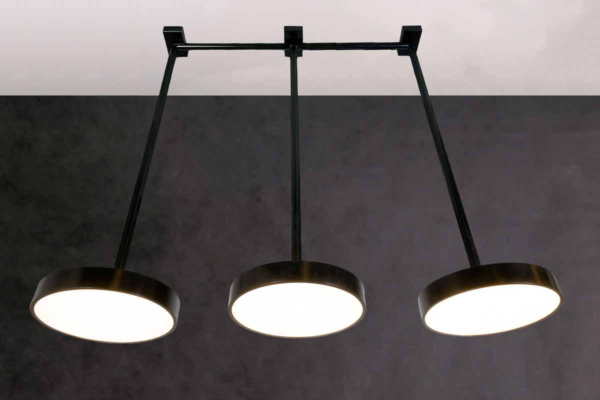Люстра из трёх дисковых светильников.